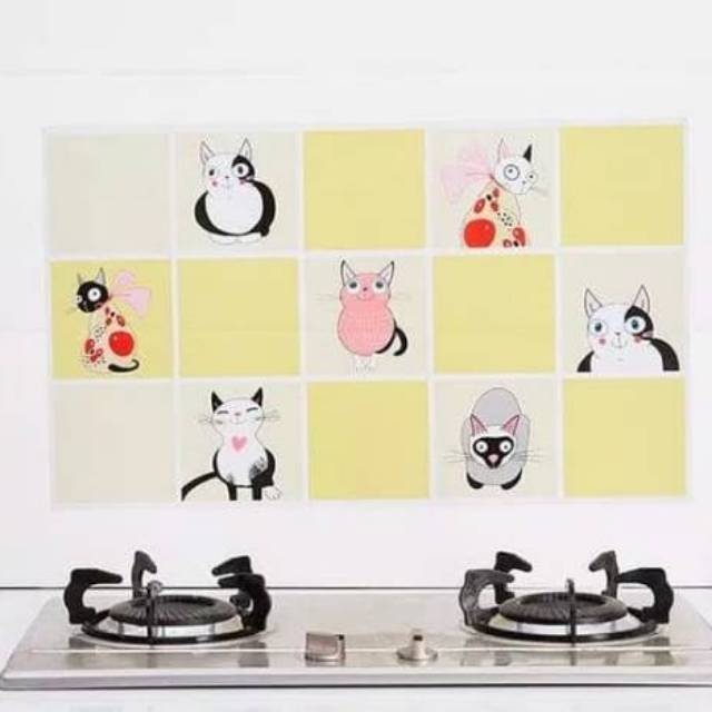 Grosir Perlengkapan di Kabupaten Pamekasan Wall Sticker Anti Minyak Sticker Tembok Dapur Motif Kartun 70x45cm Aluminium Foil Mudah Dibersihkan dari Bright Harmoony Kota Tangerang