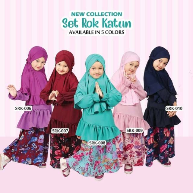 Bismillah* SRK * (Set Rok Katun)SO CUTE & BEAUTIFULSET TUNIK + ROK + JILBABBahan baju : WollycrepRok : Katun JepangJilbab : JerseySizeS : (2Y-3Y) M : (4Y-5Y) L : (6Y-7Y)XL : (8Y-9Y)Harga S = 115rb M = 122rb L = 129rb XL =