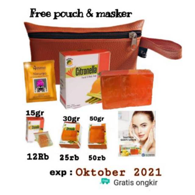 citronellaExpired date : OKTOBER 2021Catatan : HARGA 20 DAN 40RB TDK PAKE POM NA : 18181204660 menggunakan 100% bahan-bahan alami seperti minyak sereh dan ramuan lainnya untuk mengatasi jerawat dan menghilangkan bau badan, minyak serai dengan wangi segar, berasal dari tanah jawa Indonesia . Minyak serai bersifat anti serangga sehingga mengurangi gatal pada kulit. Dapat digunakan sebagai sabun antiseptik..Kegunaan & khasiat sabun bidoyi citronella- sebagain sabun pencerah muka&body- sebagai sabun antieseptik miss V dan mrs P- menghilangkan bekas jerawat- menghilangkan flek hitam - membuat wajah kita 5thn lebih muda- menghilangkan bau badan- memberentasi keputihan - mengesatkan miss V- mempeebesar mrs P- mengatasi panu-mengecilkan pori-pori wajah- menghilangkan keriput- menghilangkan bau badan- menjadikan kulit bersih dan lembutCara penggunaan :Basahi wajah dengan air, usapkan busa sabun dengan gerakan memutar selama 30 detikPOM NA : 18181204660#sabunherbal #facialwashandbody #sabuncitronella #sabuncitronellamurah #sabuncitronellabpom #sabunmuka #sabunmukabestseller#sabunherbal #facialwashandbody #sabuncitronella #sabuncitronellamurah #sabuncitronellabpom #sabunmuka #sabunmukabestseller#citronella #bidoyicitronella #sabun #sabunbatang #serumco