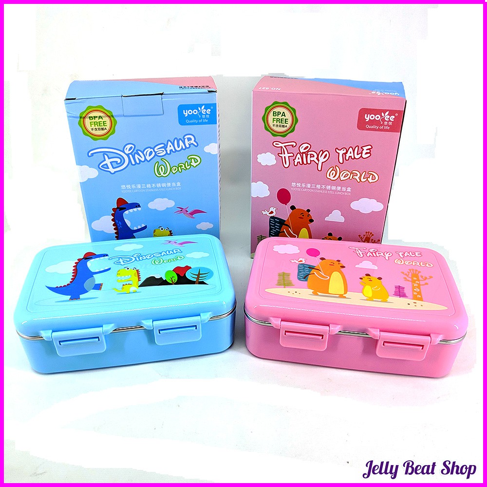 Kotak makan Yooyee 3 Grids Stainless Steellunch box LEAKPROOF dan anti tumpahSudah BPA Free dan menggunakan stainless 304 jugaAda warna pink dan biruUkuran 19.5 x 14.5 x 6.5 cmVolume 550mLKotak makan ini cocok dengan tas susun medium yang ada di etalase kamiAsliii.. Ini LUCU banget!Warnanya juga cerahUkurannya kecil & gampang di bawaCOCOK banget untuk anak-anak..Jangan sampe GA KEBAGIAN yaaYuk langsung ORDER sekarang!Happy shopping, Jell