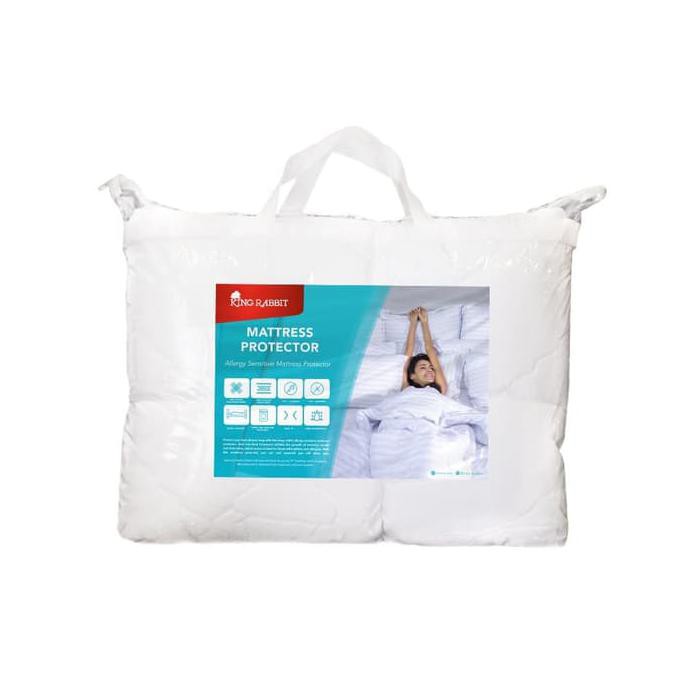 Mohon tanyakan stock terlebih dahulu sebelum anda order, Harga dapat berubah sewaktu-waktuKing Rabbit Mattress Protector - Cover pelindung kasur berguna untuk memperpanjang usia kasur dengan melindungi kasur dari noda dan kotoran. Mattress Protector ini memiliki pita elastis di setiap sudut untuk menjaga pengaman kasur supaya tetap di tempat dan tidak bergeser. Pilihan yang tepat jika anda alergi terhadap tungau karena matrass protector ini mudah untuk dilepas dan dicuci, sehingga senantiasa menjaga kebersihan Kasur anda. Isi Paket : 1 Pcs matras protector ukuran 100x200 cmFitur Produk : Pelindung springbed dan kasur dari kotoran dan cairan Membuat kasur makin empuk karena matras protector melapisinya Mencegah kutu / dengau di kasur / springbed karena matras protector dapat dicuci Dengan karet disetiap ujungnya yang membuat matras protector tidak bergeser dan pas di kasur Menghindari kamar dari bau karena matras jika kotor / basah bisa dijemur / d