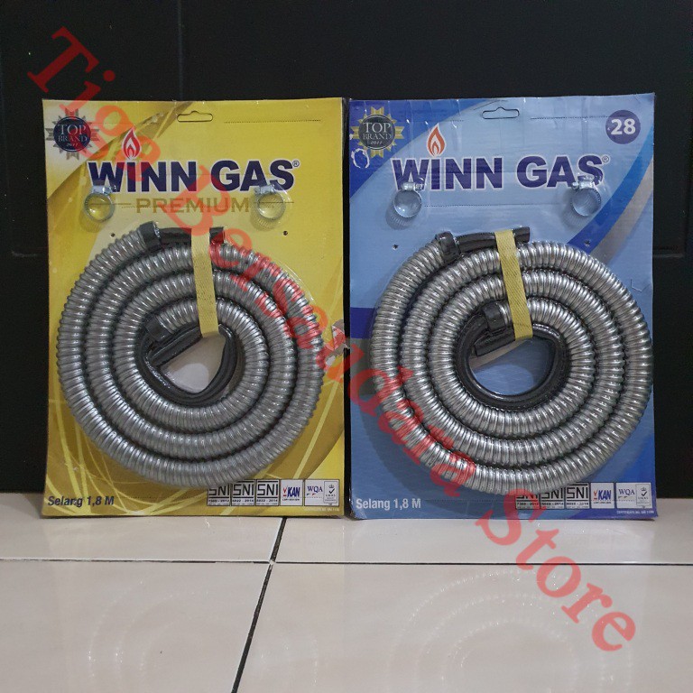 Selang LPG Winn Gas PremiumPanjang = 1,8 mProduk Sesuai FotoKemasan Biru dan Kuning Memiliki Kualitas dan Tipe yang sama, hanya perbedaan kemasan sajaTerdaftar SNI da
