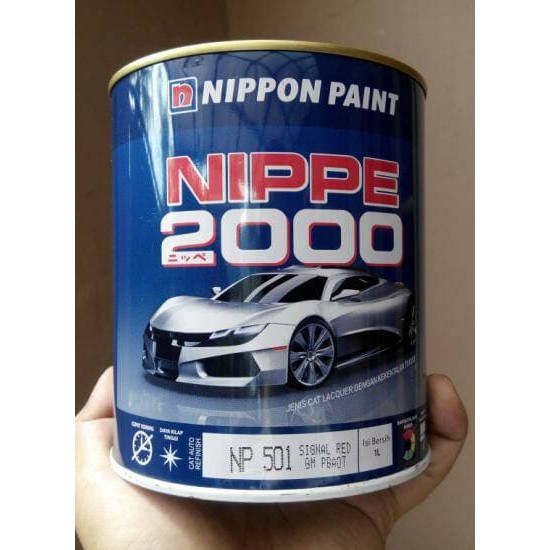Ready Stok Semua Warna khusus di Kartu Warna Nippe. Pengiriman Jabodetabek only via Grab atau Gojek.Yang Termasuk Warna Khusus : Merah, Kuning, Orange, Emas, Chrome, Silver, TembagaNIPPE 2000 adalah cat lacquer auto refinish berbasis nitroselulosa yang cepat kering, daya kilap tinggi dan tersedia dalam berbagai pilihan warna yang tahan lama. Cat ini juga memiliki daya lekat dan ketahanan yang sangat baik untuk diaplikasikan pada kayu dan besi. NIPPE 2000 dikenal untuk pengecatan pada kendaraan, mesin, kerangka kayu dan besi/baja.Aplikasi DataPengenceran : 50 100% Nippe 2000 High Gloss ThinnerAplikasi : Kuas atau air sprayDaya Sebar Teoritis : 7 9 m2/liter/lapis.Waktu Pengeringan :Kering Sentuh : 5 menit.Kering Keras : 1 jam.Interval Pengecatan Selanjutnya : 2