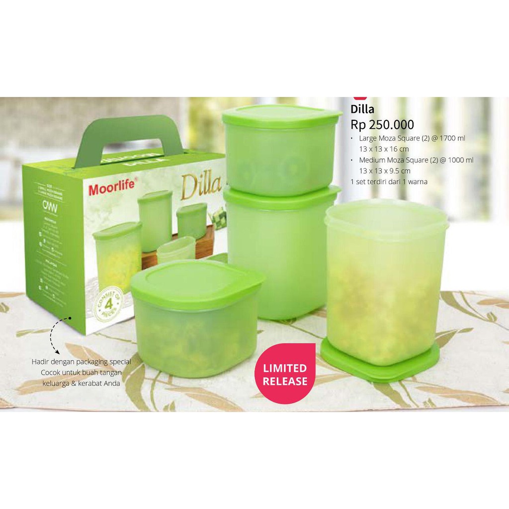 1 set terdiri dari 4 pcs dan 1 warna Desain terbaru yang unik dan cocok sebagai tempat untuk menyajikan kue lebaran dengan tutup yang kuat .Cocok dijadikan parcel untuk keluarga dan kerabat di hari raya & sebagai hadiah untuk berbagai acara.* Large Moza Square 2 pcs @ 1700 ml , uk 13 x 13 x 16 cm* Medium Moza Square 2 pcs @ 1000 ml, uk 13 x 13 x 9,5 cmBahan plastik foodsafe, BPA free dan sudah memenuhi ISO standard.#moorlife#moorlifedilla#mozasquare#topleskue#toplesset#hadiahparcel#temp