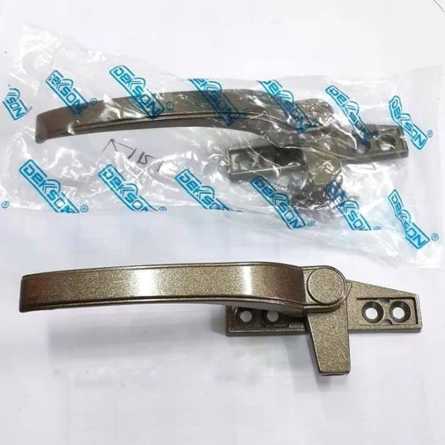 Handle Jendela Rambuncis Casement Handle CH 425 DeksonDeskripsi : Rambuncis / Casement Handle untuk pengunci dan pegangan kusen frame AluminiumMerk : DekksonTipe : CH 425Penggunaan : Tangan Kanan (RH) (Harap cantumkan pilihan dalam keterangan pesanan)Finishing / Warna : BrownSatuan : 1 Pcs (Lengkap Penutup Lubang Sekrup)#handle #handlejendela #rambuncis #casement #CH425 #dekson #alumunium #tangankanan #righthand #brown #original #hargagrosir #hargap