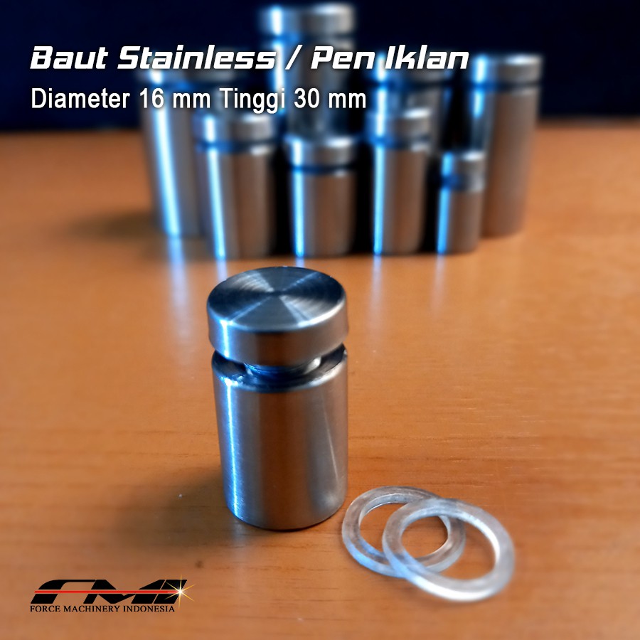 baut stainless ini berfungsi sebagai penjepit papan iklan atau papan pengumuman yang terbuat dari akrilik juga kaca, semisal mau kita pasang didinding atau tempat lainnya.Catatan :PENGIRIMAN :- Jam Kerja Resmi Force Laser Indonesia Senin - Jumat(09.00-17.00), Sabtu (09.00-15.00).- Pelayanan Pemesanan Tetap Buka 25 jam x 7 hari- Pengiriman dilakukan pada hari Senin ~ Sabtu.- Transaksi sebelum jam 14.00 akan dikirimkan pada hari yang sama, setelah jam 14.00 akan dikirimkan pada hari berikutnya.Namun akan kami usahakan semaksimal mungkin untuk mengirimkan semua order yang masuk meskipun setelah jam 14.00.Transaksi hari Sabtu yang masuk diatas jam 14.00 akan dikirimkan hari S