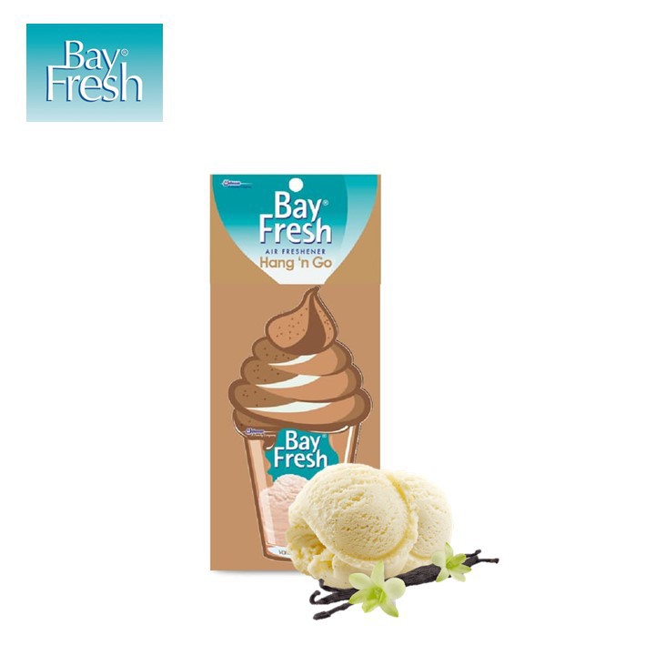 Bayfresh Hang N' Go Vanilla Ice Cream isi 1 pcs merupakan produk pengharum ruangan ataupun lemari mekanisme gantung dengan aroma es krim vanilla yang unik. Aroma yang dihasilkan dapat memberikan kesegaran sekaligus menghilangkan bau tidak sedap pada ruangan Anda. Bayfresh memberikan aroma yang tidak akan mengganggu pernafasan ataupun bau yang terlalu menyengat pada hidung A